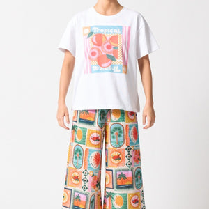 The ultimate summer statement. Featuring a bold tropical fruit print and pastel stripes, it’s a vibrant mix of fun and freshness. Crafted from soft cotton for all day comfort, it's a go to for relaxed days and Euro summer dreams.