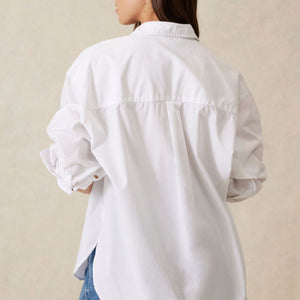A true team favourite, the Peta Oversized Poplin Shirt is designed with intention and ease. Crafted from light weight one hundred percent organic cotton poplin, this shirt feels cool on the skin and delivers effortless style with its relaxed oversized fit. Finished with refined details like forward shoulder seams, knife pleats at the cuffs and mid weight topstitching, it is the ultimate wardrobe staple for year round wear.