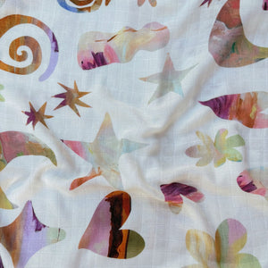 Crafted with exclusive artwork by Laura O’Shannessy, the Aura Wrap brings artistry and function together in a piece that works beautifully across baby care and everyday life. Whether it's quietly soothing your newborn, shielding a waking tot from sun during stroller walks, or adding effortless style to your summer outfit, this wrap does it all gracefully.