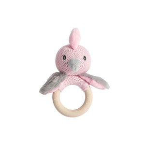 Delight and soothe your little one with our gorgeous Galah Rattle. Crafted from soft cotton knit with a handmade feel, it features a gentle jingle and a BPA free silicone teether ring, perfect for tiny hands and growing gums.