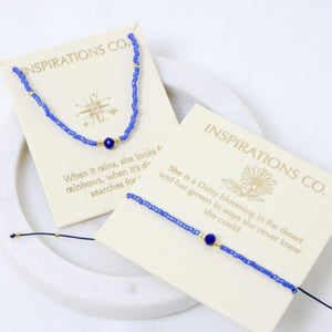 Our versatile Inspiration Bracelets are adjustable, come in an assortment of colours, and can also be worn as anklets. Perfect for a little boho layering or stacking. Wear them with our Inspiration Necklace and Inspiration Earrings.