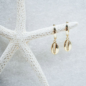 Sun, sand, and the timeless beauty of the sea—captured in gold. Our Calypso Cowrie Hoops feature sleek gold hoops with delicate cowrie shell pendants, a symbol of ocean treasures and wanderlust. Crafted in sterling silver with 14k gold plating, these ocean-safe earrings are made for sun-drenched days and barefoot adventures.