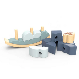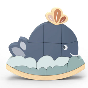 Can you stack up your new friend the whale while balancing on a wave? This is a game of skill and challenge and can be used alone or with the whole family! Players will take turns to stack each piece on top of the wave without making it topple over... The last player to successfully add a piece wins! It includes thirteen wooden play pieces. Helping with the deveploment of hand/eye co-ordination, fine motor skills and dexterity, whilst encouraging problem solving.This toy is crafted from sustainably sourced wood from FSC® certified forests and coated with non toxic paint.