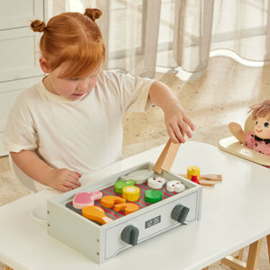 Fire up the fun with the Zookabee Wooden Tabletop BBQ Set! Complete with a mini grill, colourful wooden food pieces, and utensils, this playful set invites little ones to host their own backyard BBQ adventures. Perfect for sparking creativity, building coordination, and encouraging social interaction, it comes neatly packaged in vibrant, gift ready packaging.