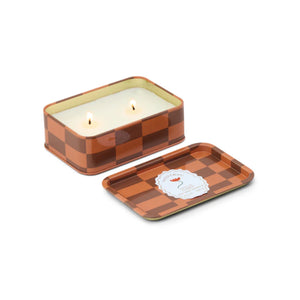 Tin vessel. 184g. Approx. 30–40 hours Burn Time. Double wick for clean, even burn