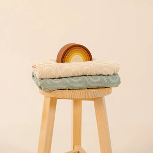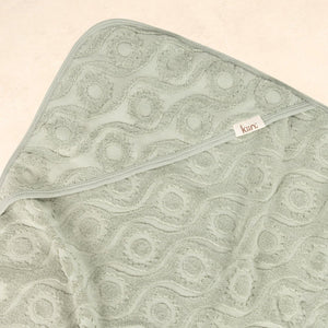 Woven from 100% premium cotton, it’s soft, breathable, and gentle on sensitive skin, with excellent absorbency to dry your child quickly and comfortably. Featuring our unique Kiin jacquard pattern in a retro-inspired sun design, it brings a touch of timeless style to summer memories. Available in our two most-loved colours, Sage and Oat, and finished with a simple hood (no bear ears)for a fuss-free, classic look.