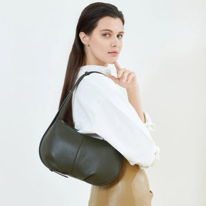 - Modern crescent shoulder bag silhouette