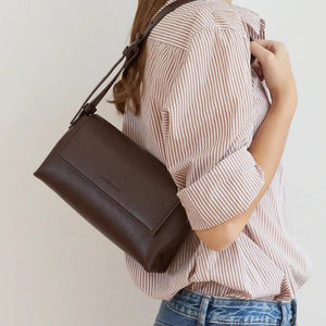 Crafted from smooth vegan leather, the Sophia features a secure magnetic flap closure that opens to reveal a thoughtfully organised interior with built in card holders. A discreet back zip pocket keeps frequently used items close at hand, while the adjustable strap allows you to wear it comfortably as a shoulder bag or crossbody throughout the day.