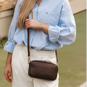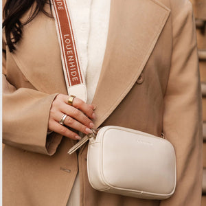 The Bianca Crossbody Bag is a stylish yet practical companion, thoughtfully crafted for life on the move. This women’s crossbody bag features a compact, camera style silhouette that combines everyday functionality with timeless appeal. Made from buttery soft vegan leather and finished with light gold hardware, Bianca brings a polished touch to casual styling. As a travel friendly crossbody, she’s lightweight and easy to wear, with two interchangeable strap options: a bold logo webbing guitar strap for statement appeal, or a matching adjustable vegan leather strap for a more refined look. A secure zipper handbag by design, Bianca keeps your essentials safe and within easy reach. Inside, you’ll find two internal pockets to keep your valuables organised and close at hand. Effortlessly versatile, she is the hands free essential that keeps up with you from daily errands to weekend escapes.