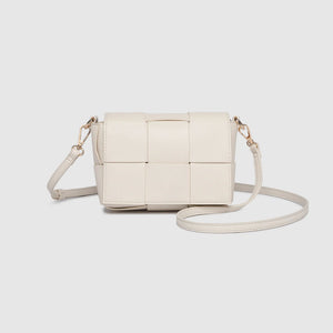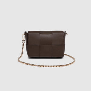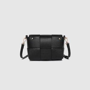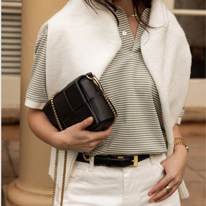 The Josephine Crossbody Bag is a statement in both texture and versatility, designed to deliver effortless elegance from day to night. Crafted from woven vegan leather panels, she offers a modern twist on classic texture, adding a refined edge to everyday styling. This women’s woven handbag features a structured silhouette with a magnetic closure to keep your essentials secure, while light gold hardware lends a polished finish. With two interchangeable straps: a sleek vegan leather crossbody and a gold, short shoulder chain strap - Josephine adapts to suit your style.