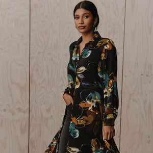 Seamlessly shifting from casual chic to sophisticated elegance, the Elsie Shirt Dress is set to become your go-to workwear staple. Its airy silhouette can be worn loose for a relaxed vibe or belted for a more tailored appearance. With a classic collar and a full button-down placket, this dress embodies timeless style. Pair it with a trench coat, knee-high boots, and minimal accessories to complete your polished look.