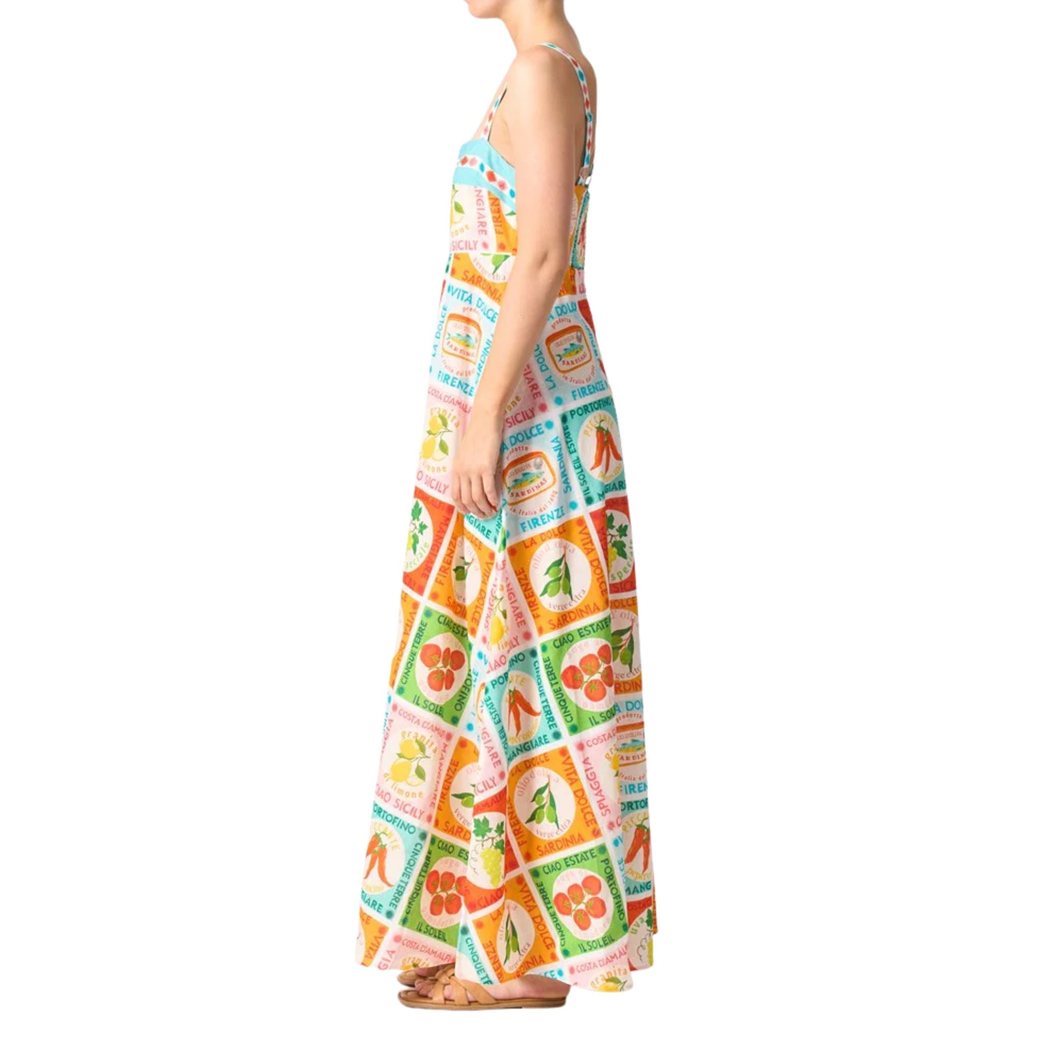 A sunny day statement in full technicolour. The Milan Dress is crafted in lightweight cotton and cut to a flattering fit and flare silhouette. It features a square neckline, adjustable straps, and smocking through the back for comfort. The vibrant ‘Ciao Sicily’ print brings a nostalgic nod to European summer adventures, perfect for day to dinner dressing.