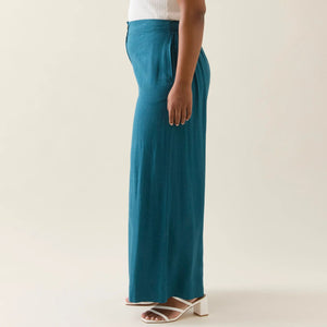 A timeless summer staple, the Ingrid Pant is crafted in a breathable linen blend with a full-length, wide-leg silhouette. The high waist features a fly front with a shell button and internal hook and bar closure.