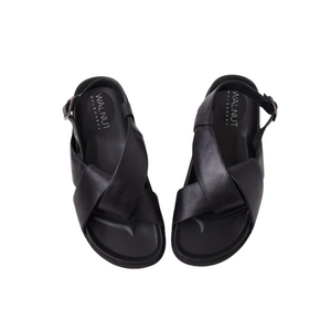Our sleek Mya Sandal is the new must-have style! The soft leather cross-over straps are simple yet striking, ideal for taking any classic look to the next level. Slip on the Mya Slide with a denim skirt and tote bag for a stylish beach outfit!