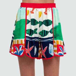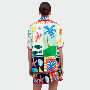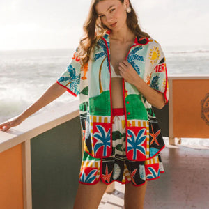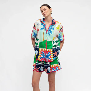 Fresh, fun and effortlessly cool, this relaxed fit set features an exclusive print that captures easy summer style. Designed with a collared button through shirt and coordinating elastic waist shorts, it blends comfort and polish for off duty days and coastal escapes.