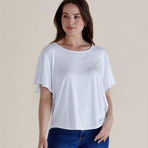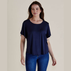 Meet your new go to essential, the Everleigh Bamboo Tee is designed for effortless style and all day comfort. Made from a silky soft bamboo blend, this tee offers a relaxed fit, breathable feel, and flattering drape that works for every body and every wardrobe.