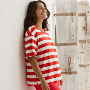 The Relax Boxy Tee redefines casual sophistication with its oversized fit and cotton jersey comfort. Designed with a scoop neckline, short sleeves, and side splits, it adds an elevated edge to everyday outfits. A chic silhouette that’s perfect for transeasonal layering or relaxed weekend wear. Simple yet refined.