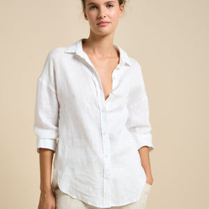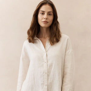Enhance your wardrobe with our long sleeve boyfriend shirt made of luxurious linen. Perfect for any occasion, pair it with your favourite pieces for a sophisticated look. A must-have staple for any fashionista.