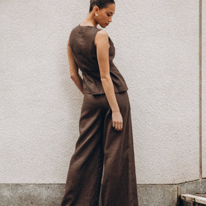 The Linen Tie Top by White Closet in a deep chocolate shade combines timeless elegance with breathable comfort. Crafted from premium linen, its tailored fit and subtle tie detail create a polished look perfect for sophisticated occasions or elevated everyday wear.