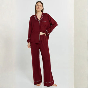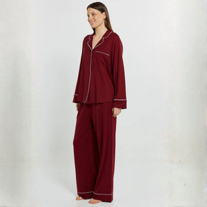 Made from soft stretch jersey, this set features a classic button-through shirt with contrast piping and relaxed full-length pants with an elasticated waistband for ultimate comfort. Easy to wear, easy to love, and created for a meaningful cause.