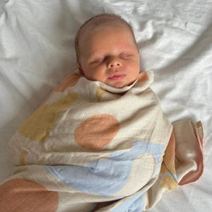 Crafted with exclusive artwork by Laura O’Shannessy, the Aura Wrap brings artistry and function together in a piece that works beautifully across baby care and everyday life. Whether it's quietly soothing your newborn, shielding a waking tot from sun during stroller walks, or adding effortless style to your summer outfit, this wrap does it all gracefully.