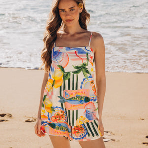 The Estrella Set combines a breezy top and matching shorts designed for summer comfort. Crafted to keep you cool, this ensemble offers effortless sophistication, making it ideal for warm days when style and ease are essential.