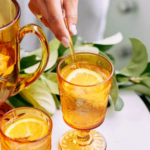 Our Palm Tree glassware range features detailed etched glass designs available in drinkware and side plates. This range will make your summer table sing!
