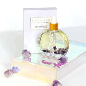 Our Halo Hair Drops is an all natural, multitasking floral hair oil infused with jasmine absolute, neroli, grapeseed and argan oil. Extremely lightweight, this oil gently nourishes split ends and leaves hair feeling strong, shiny and smooth. Suitable for all hair types. Completely free from parabens, sulfates and pthalates.