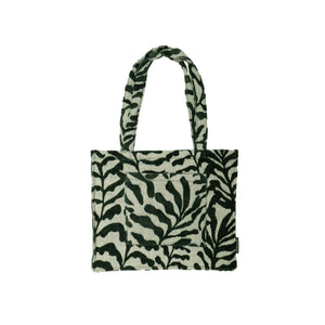 A cool cotton tote bag that is perfect for taking to the beach, the shops or a friend's house. It is made using a high-low pile technique. The large bag is light-weight and easy to wash, with a pocket at the front for some keys or a phone. This design has taken inspiration from seaweed with lovely organic leaf shapes, and features light and dark shades of the same colour.