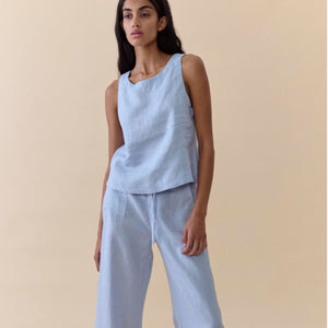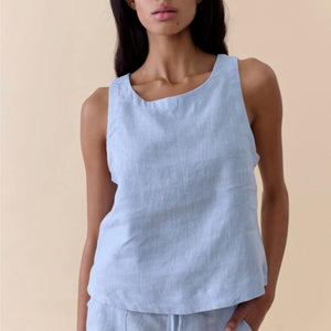 The Jude Top is a refined linen tank designed for effortless elegance. Its breathable fabric and clean lines provide a sophisticated look that enhances both casual and polished ensembles.