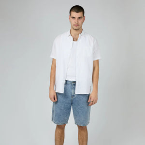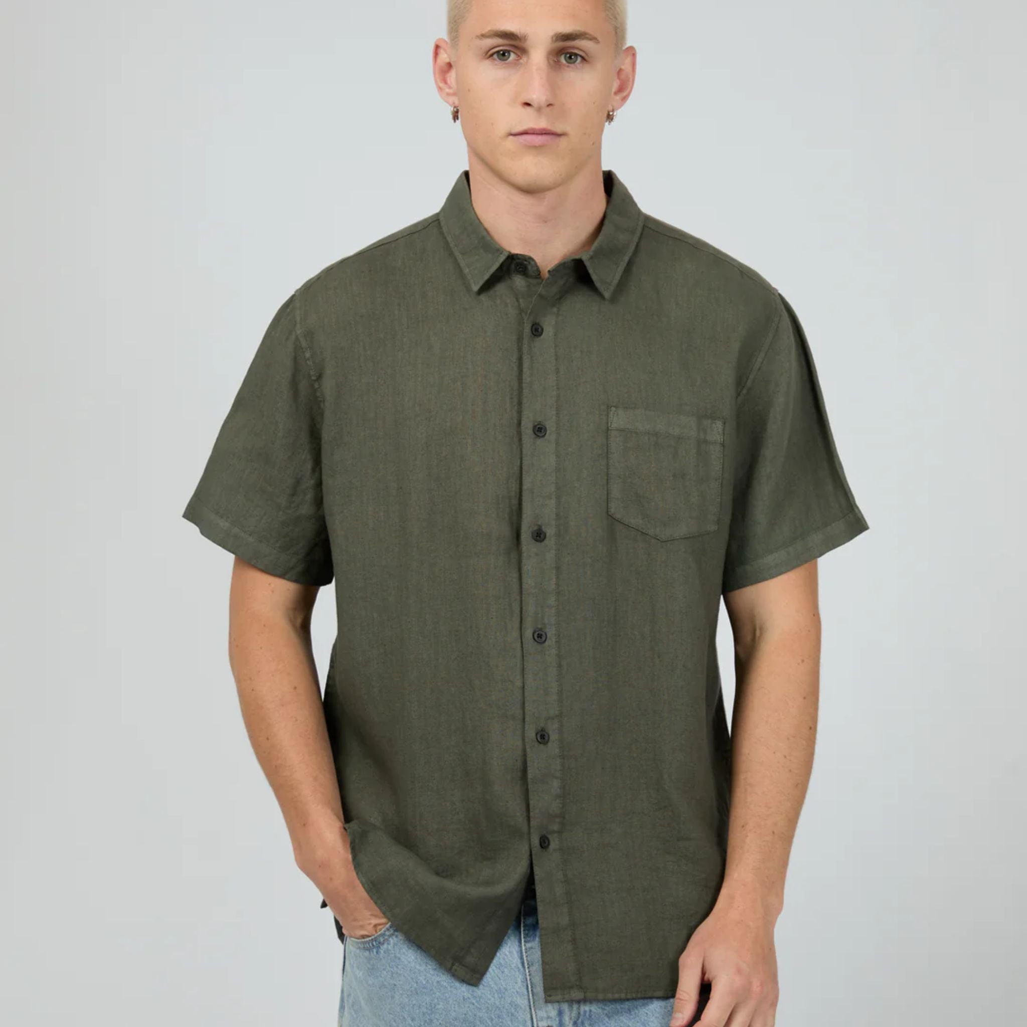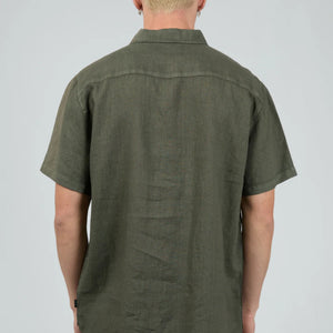 The Linen Short Sleeve Shirt II features a relaxed silhouette enhanced by a collared neckline and short sleeves for breathability and ease. Its button-down front offers versatile styling options, combining classic design with casual comfort.