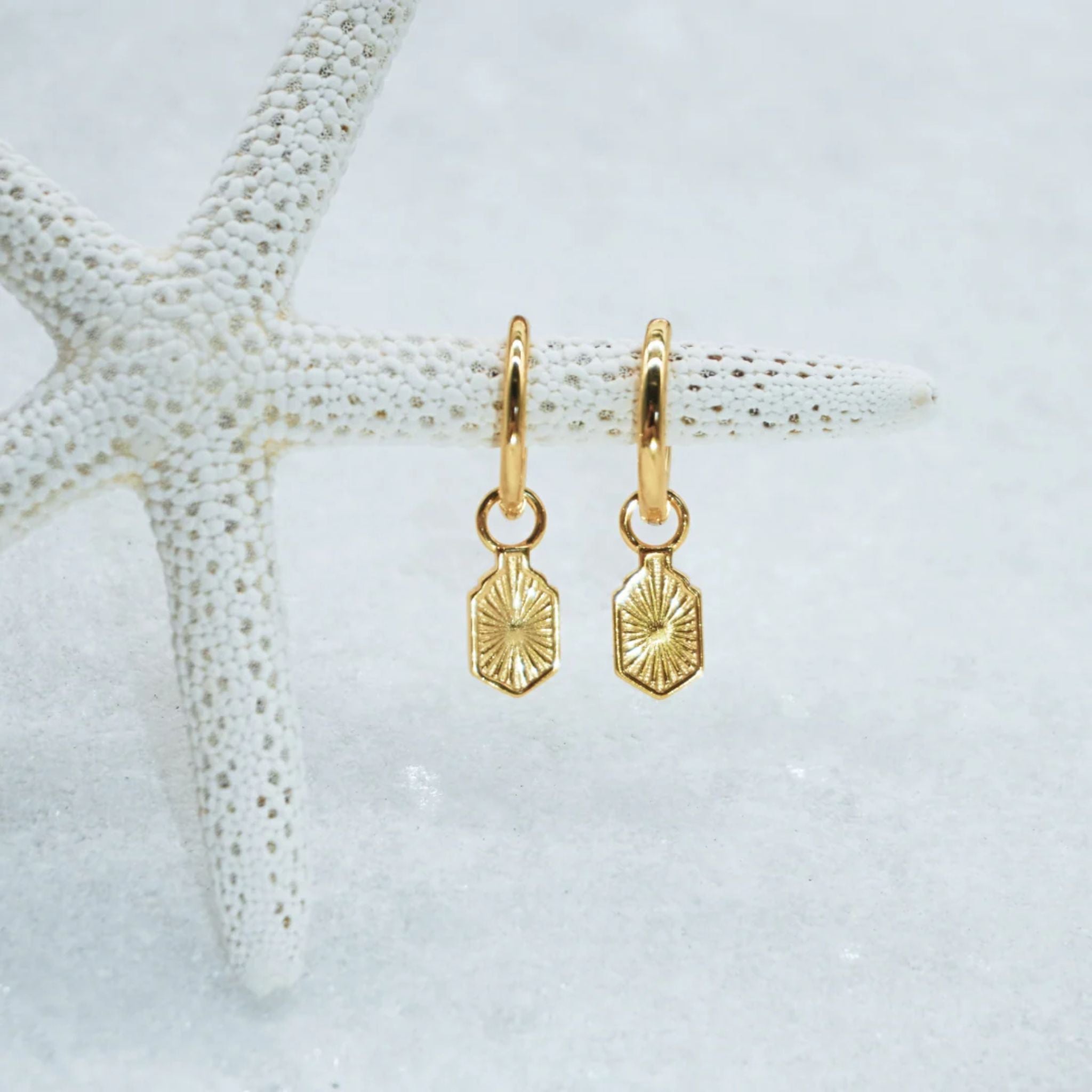 Our Manea gold pendant hoops are for our gals who love a little modern boho flair in their look. Featuring a golden drop pendant they are nothing short of fabulous.