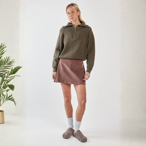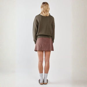 The Parco Cord Mini Skirt is structured yet effortless. Panel detailing and cord fabrication add depth while maintaining a polished silhouette. An invisible zip keeps the finish refined and clean. A transeasonal staple with elevated texture.