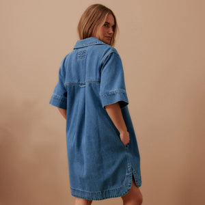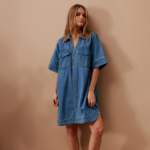 Your favouriteBoxy Dress has had an update. We have kept everything you love about the original and refined the fit for a more true to size feel. It still has a relaxed, looser silhouette so we recommend sizing down if you prefer a slimmer fit. Crafted from one hundred percent organic cotton denim, this mini length dress is soft yet durable and perfect for everyday wear.