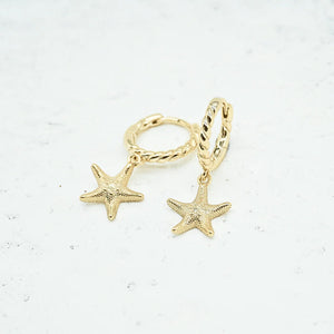 Delicate twist hoops with a detailed starfish charm — gives you a light-catching, ocean-inspired piece that instantly lifts your look. They're the kind of earrings you’ll reach for on beach days, brunch dates, and everything in between.