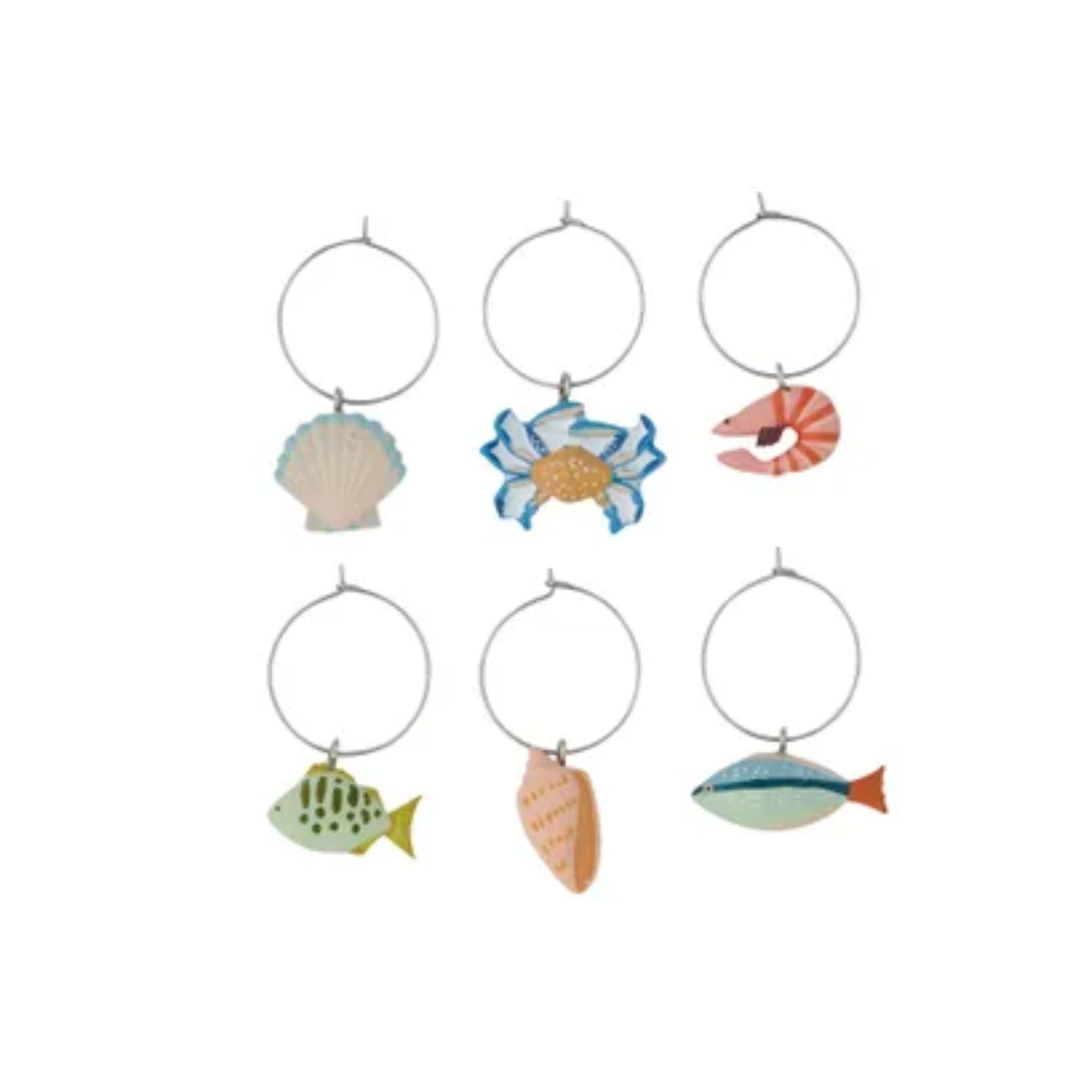 Elevate your table settings with this charming set of six resin wine glass markers.