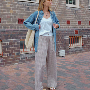 Meet the Lounge Pant – crafted for laid-back days. Made from Organic cotton Poplin, these pants feature an elasticated waist for ultimate comfort, pockets in the side seam, a flattering wide leg and relaxed styling, perfect for those easy going days when you want to look chic without sacrificing comfort.