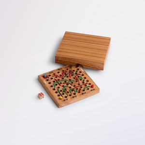 This compact travel set for four players is perfect for your next holiday or great as a casual coffee table addition. It's crafted from a beautiful eco-friendly hardwood with gorgeous wood grain.